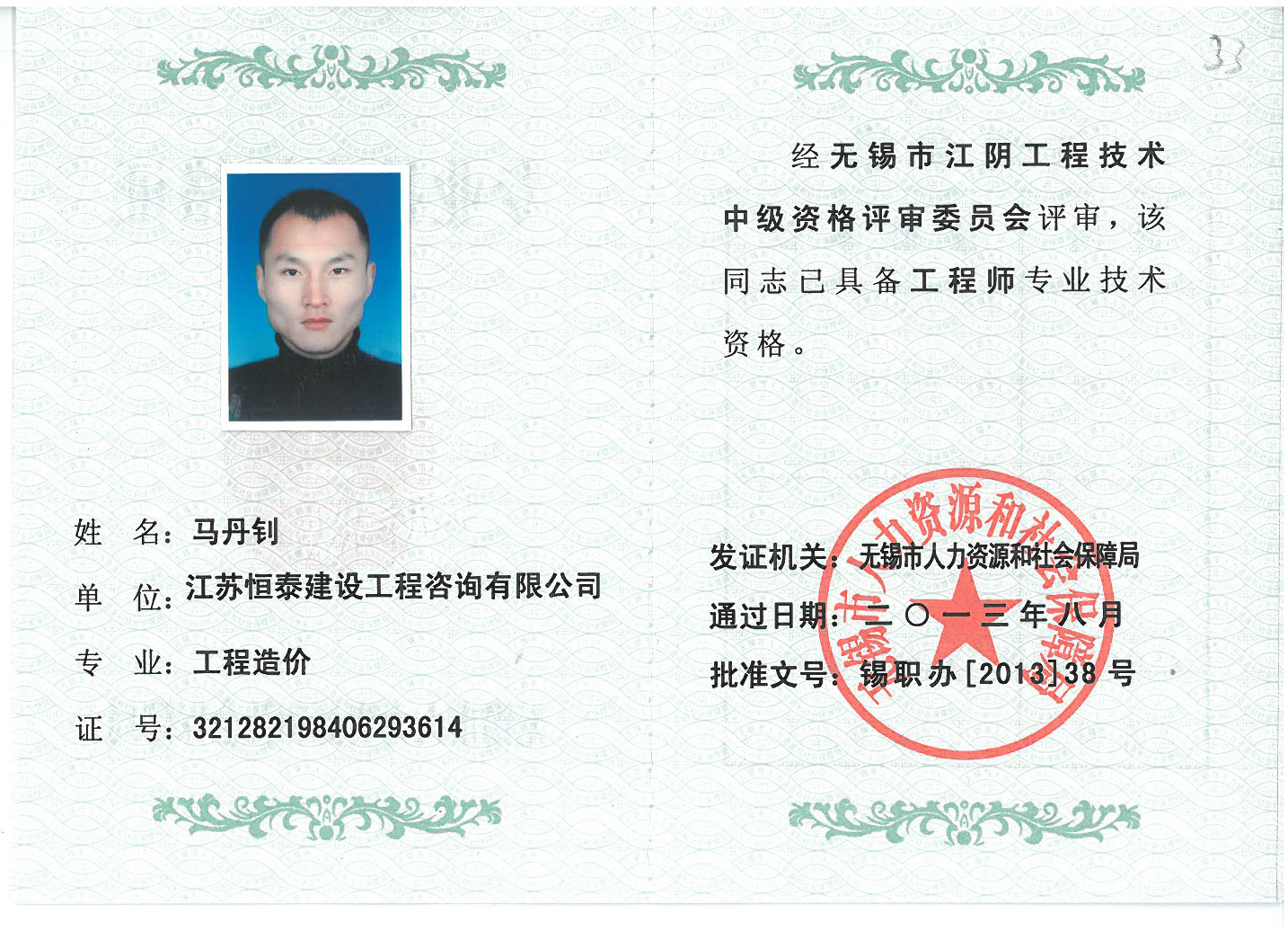 工程师、中级编审证书 曾参与江苏省江阴市高级中学新校区,苏州吴江廊桥水岸工程等案例的工作。