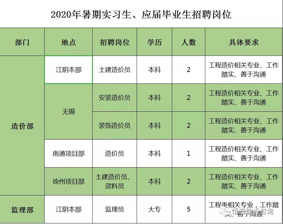 根据公司发展需要,现面向2020年暑期实习生、应届毕业生公开招聘,具体招聘岗位如下:
