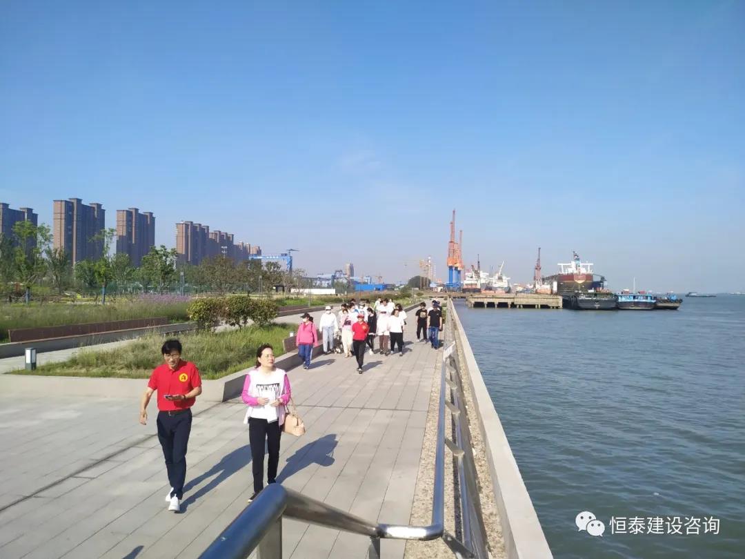 大家一路沿江边徒步到头,有的欣赏这浩浩荡荡的长江、来来往往的船只;有的聊着这黄田港的惊人变化。半小时左右就到了尽头。最后大家和这长江再来一张大合影吧!