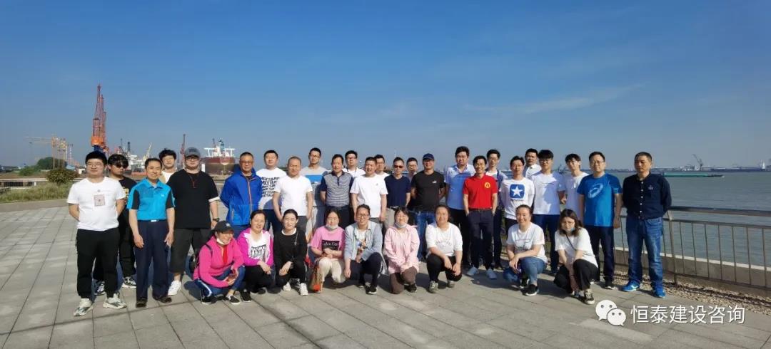 2020年5月22日早晨7:15,江苏买球(中国)成员们集合于江阴黄田港公园入口处,等待着一起浏览这“滨江亲水”项目——新建的黄田港公园。虽是清晨,但已艳阳高照,江边特有的阵阵江风给大家带来一丝凉意。正式开始之前先来一张大合照吧~