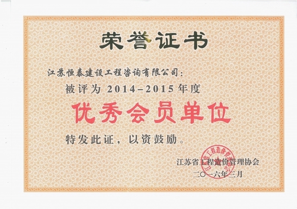 同年3月,买球官网还获得了江苏省工程造价管理协会颁发的“工程造价优秀会员单位”证书。