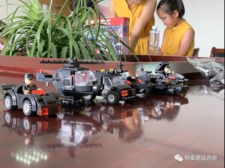 一个多小时后,有些小朋友们已经完成了一些精美作品,让我们一起来欣赏下吧!哇~真是太帅了!集合完毕,整顿出发!哈哈~这些小模型是由一个个小零件组装起来的,需要一定的耐心、细心,还有空间想象力和动手能力才能完成,孩子们从中享受到了成功的喜悦,脸上露出了自豪的笑容,我们的小朋友们真棒!