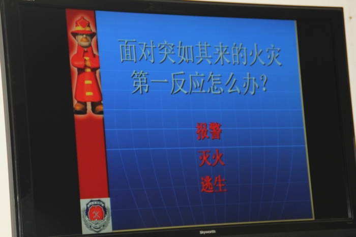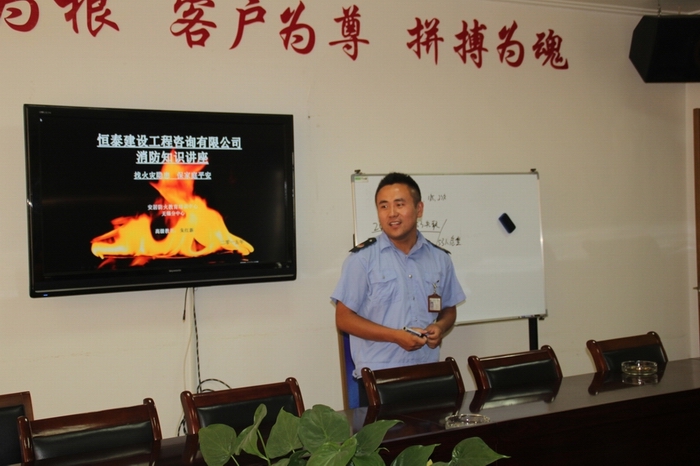 到场公司员工坐满了会议室,大家都认真听讲,朱教员在屏幕前演示家庭生活中遇到火灾应该如何应对,以及如何在生活中从源头杜绝火灾。