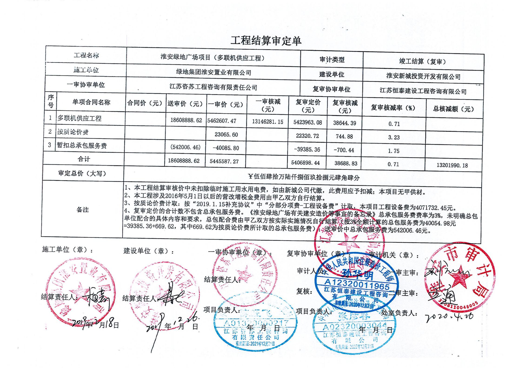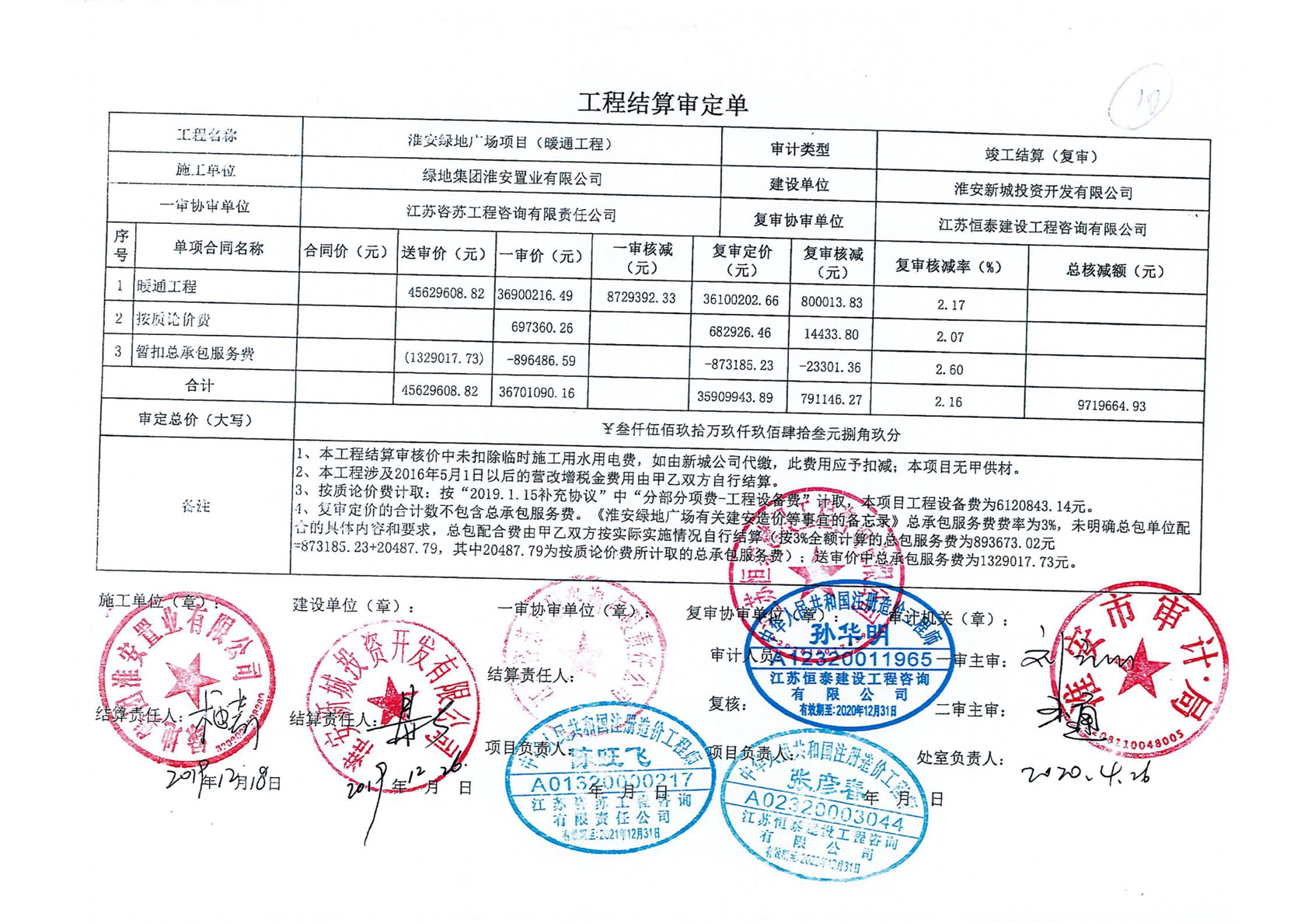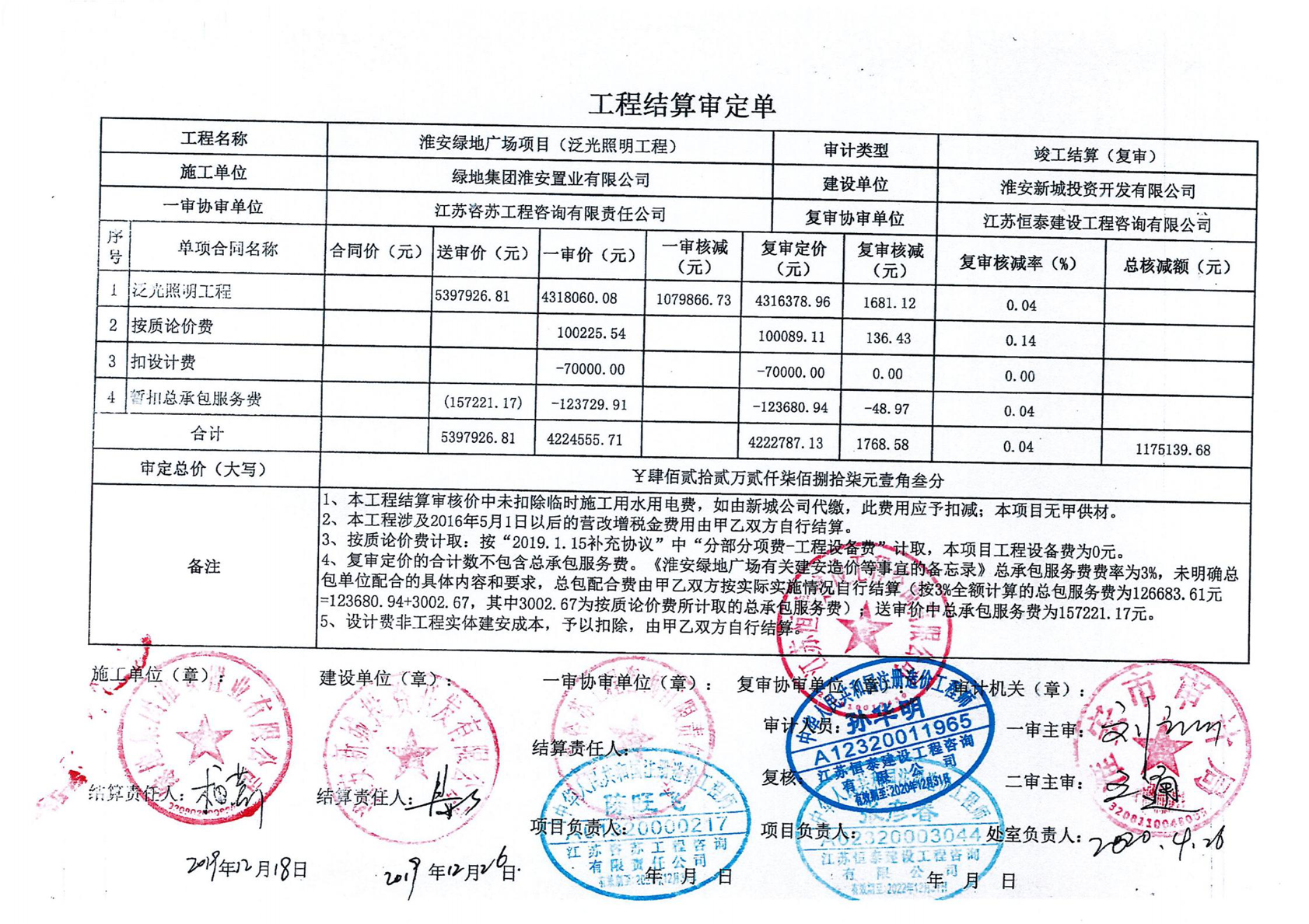 当前位置:首页» 买球(中国)案例中心 » 按服务内容分类 » 结算审核(审计) » 淮安绿地广场