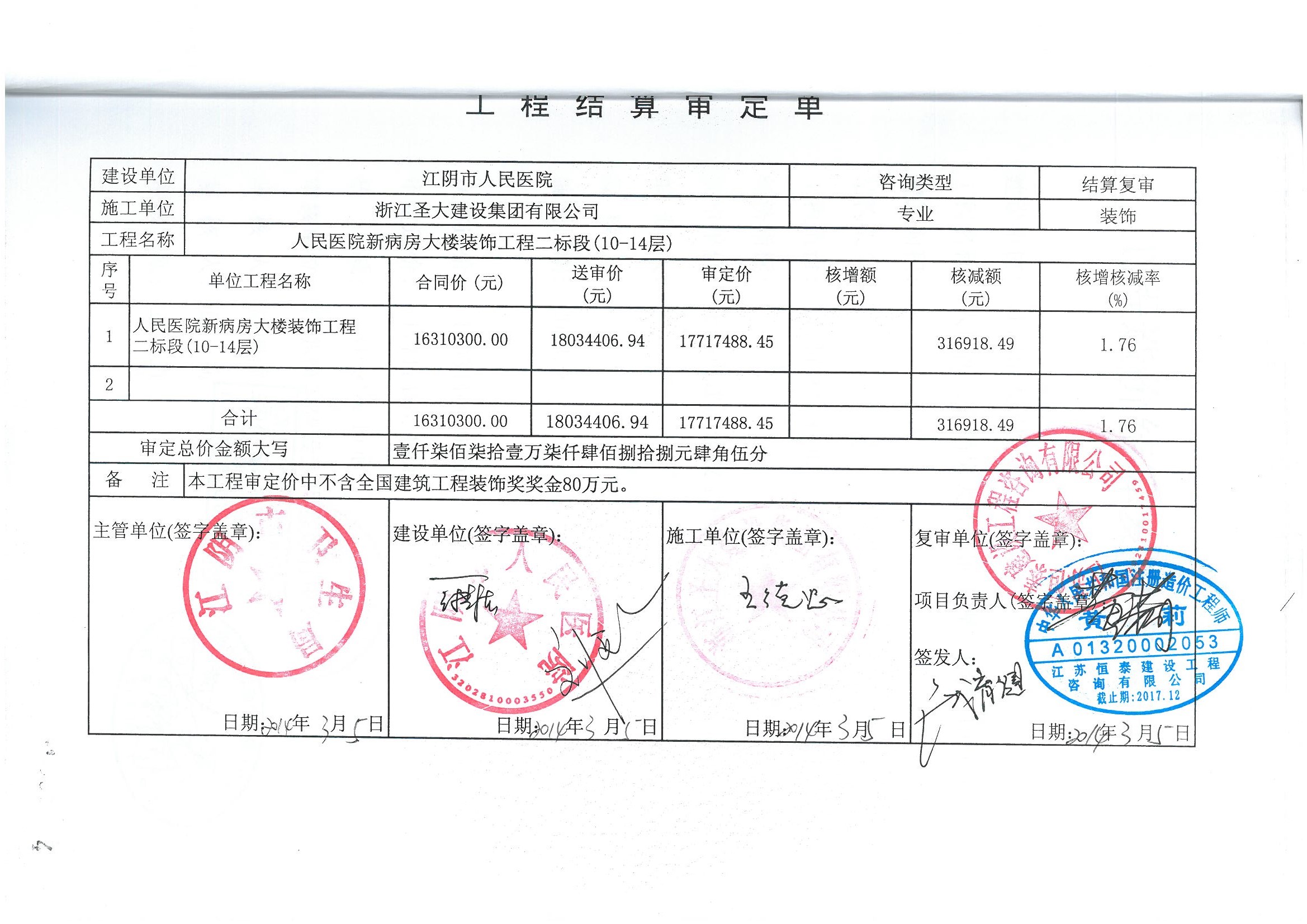 当前位置:首页» 买球(中国)案例中心 » 按服务内容分类 » 结算审核(审计) » 江阴市人民医院