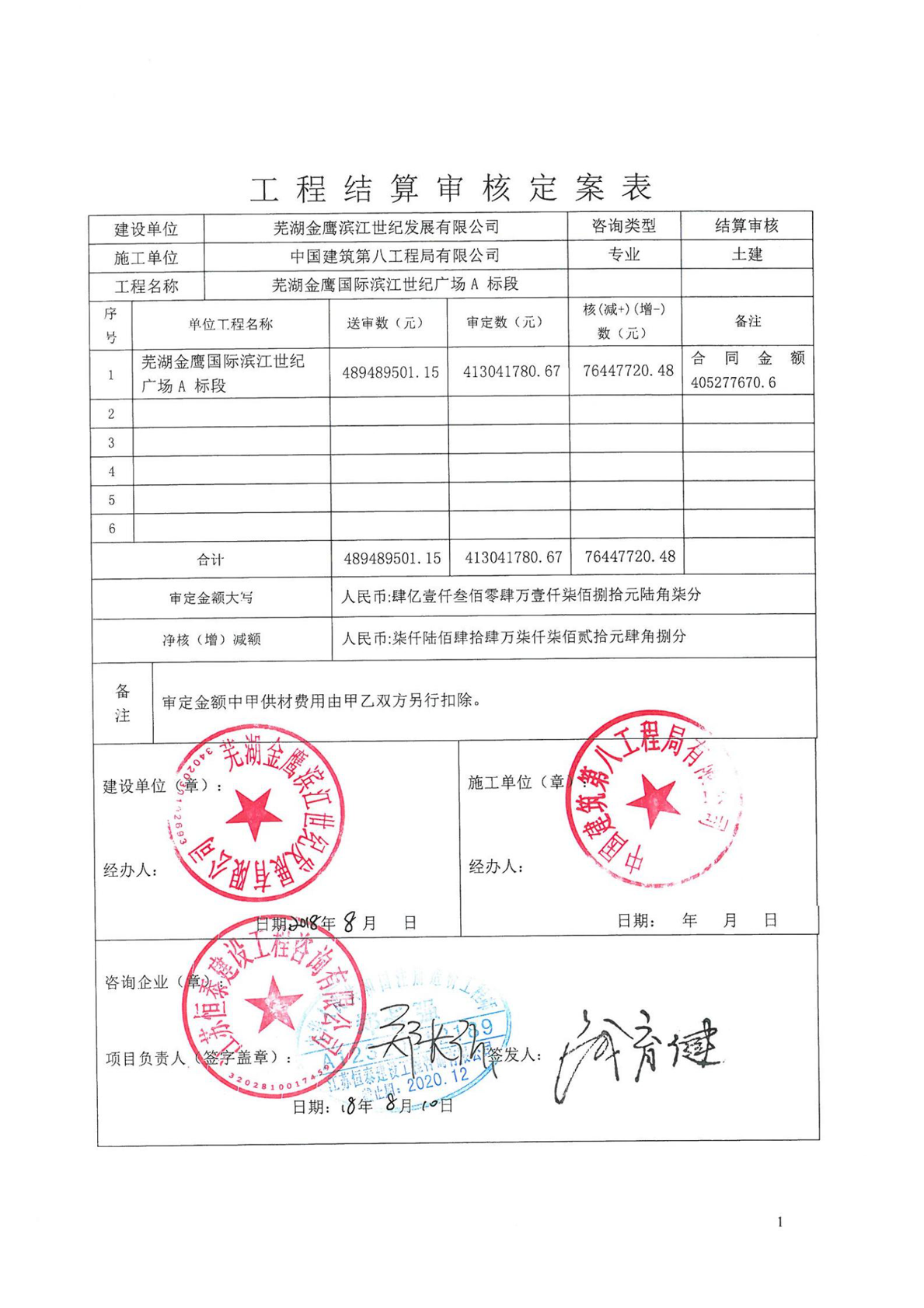 当前位置:首页» 买球(中国)案例中心 » 按服务内容分类 » 结算审核(审计) » 芜湖金鹰滨江世纪广场项目