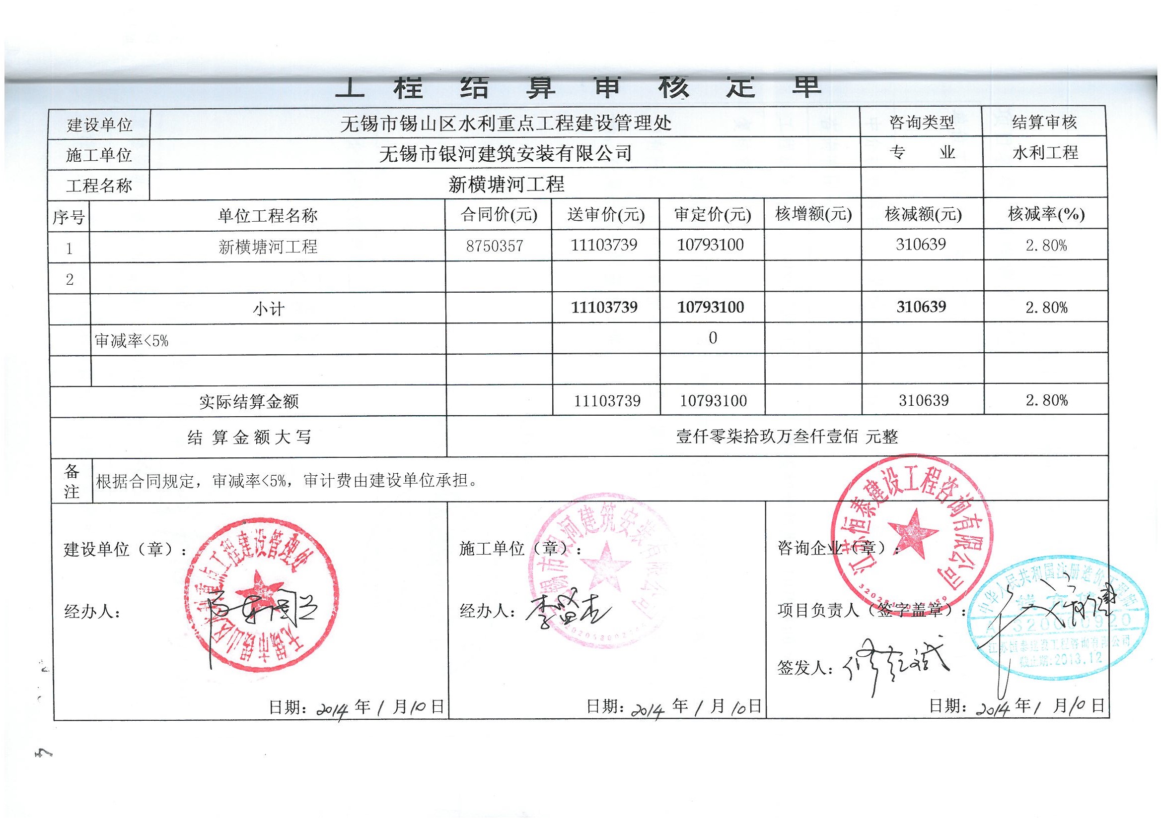 当前位置:首页» 买球(中国)案例中心 » 按服务内容分类 » 结算审核(审计) » 新横塘河工程