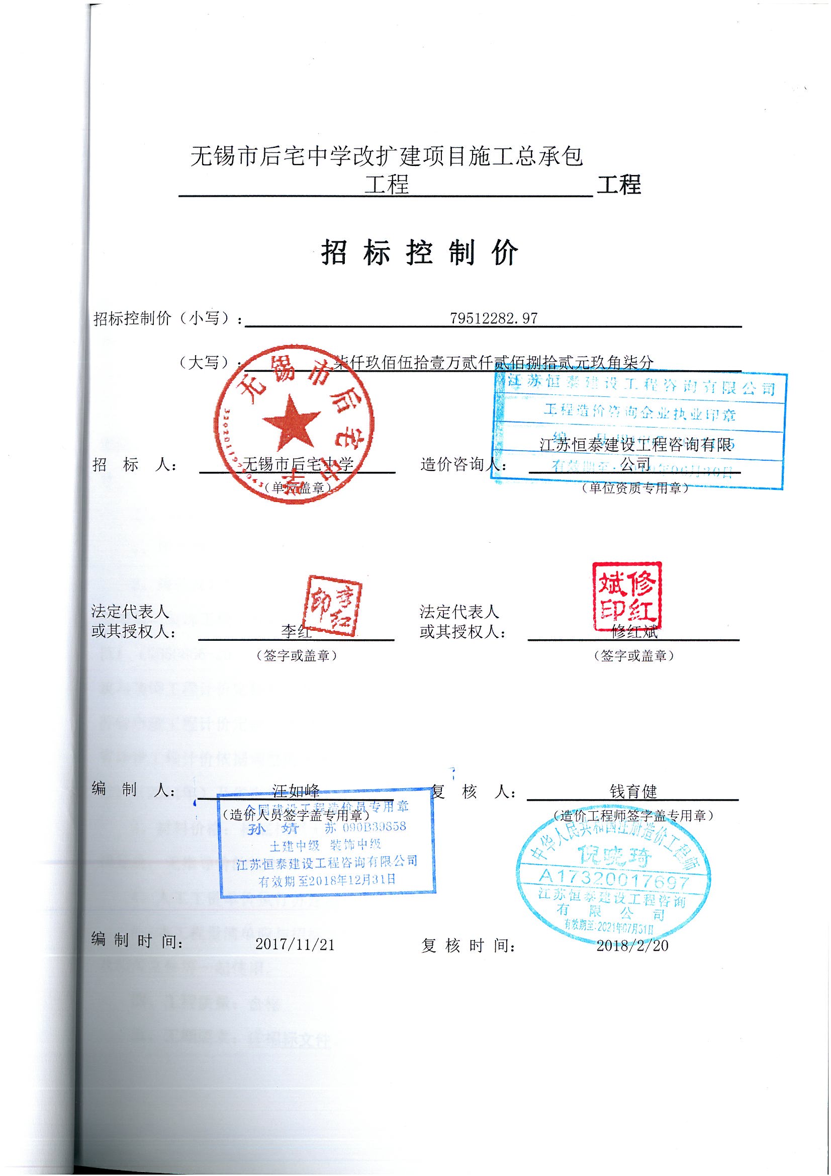 当前位置:首页» 买球(中国)案例中心 » 按服务内容分类 » 预算(标底)编制 » 无锡市后宅中学工程